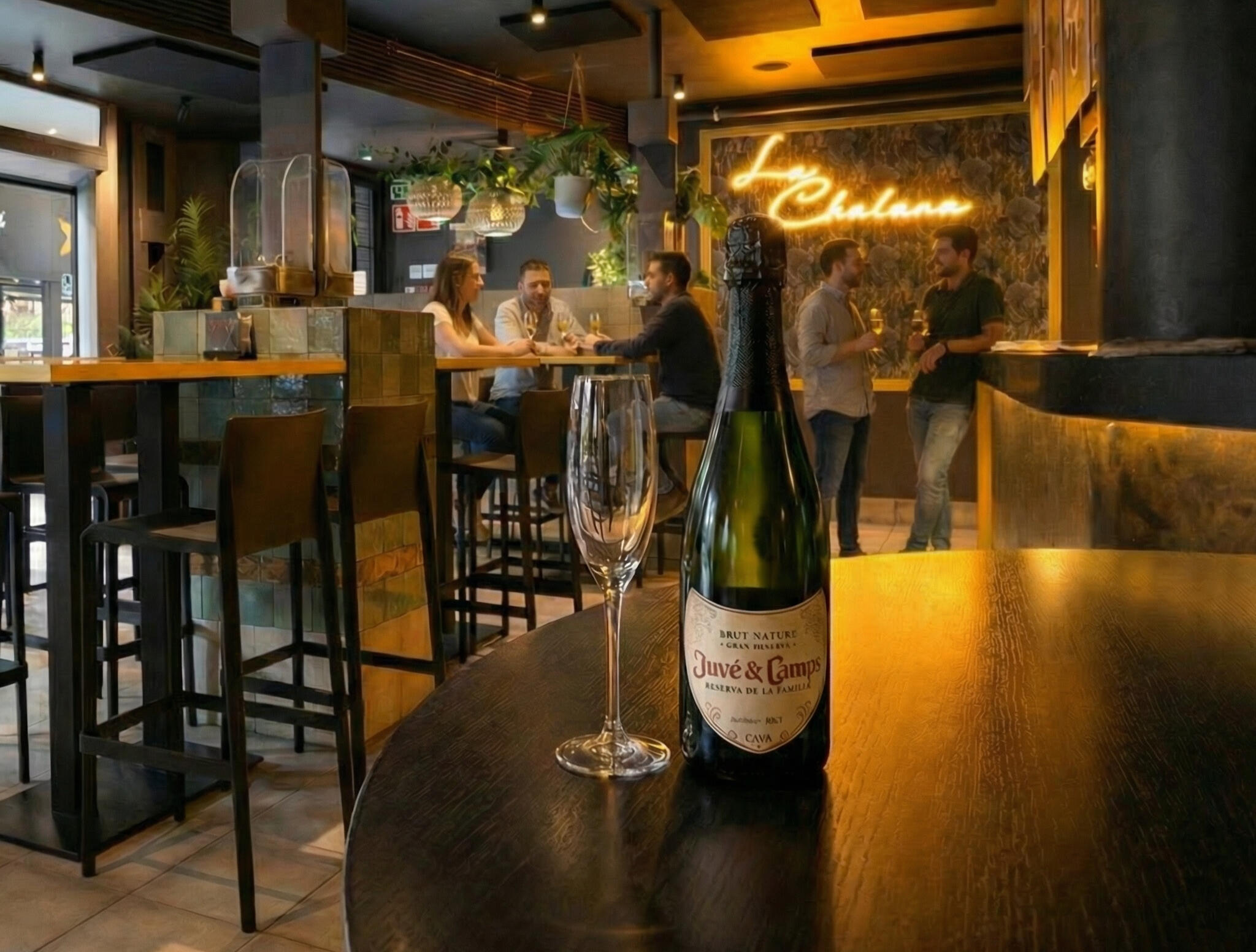 En nuestra Marisquería La Chalana Bernabéu te damos la bienvenida en barra con Juvé&Camps, un cava de referencia perfecto para abrir el apetito y maridar el momento.Porque un buen brindis siempre merece continuar.